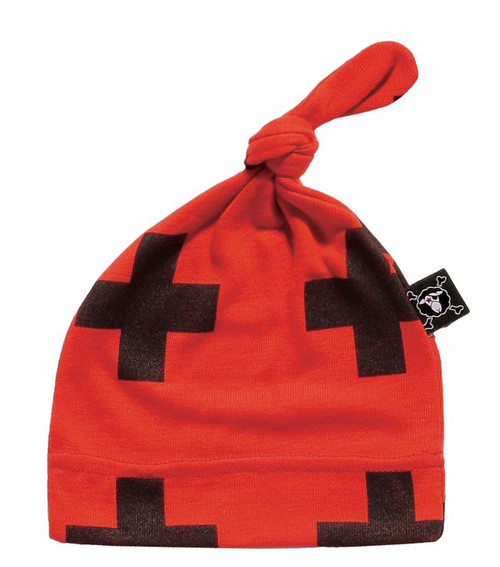 The coolest red and black Plus beanie hat for stylish boys and girls.